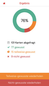 Top vorbereitet für die Prüfung? Wie viel Lernpensum noch vor dir liegt, sagen dir die Statistiken nach jedem absolvierten Lernmodus.