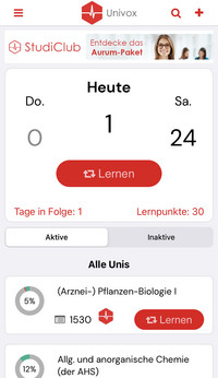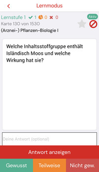 Der Lernmodus simuliert deine Prüfung. Fragen, die du noch nicht beantworten konntest, erscheinen automatisch in der nächsten Lern-Wiederholung.